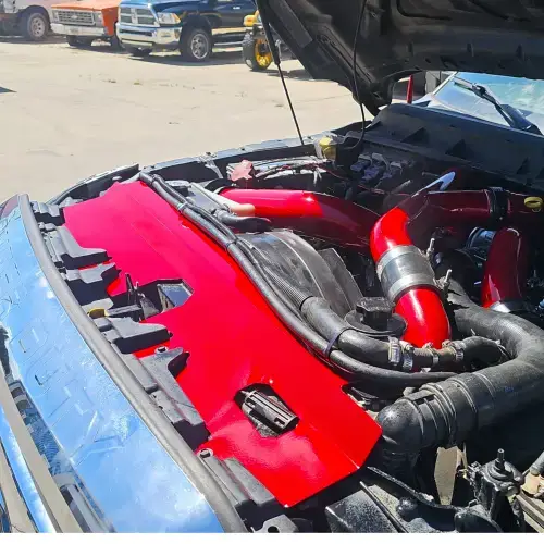 •If you have anything Mishimoto on your cooler stack you can not run this air deflector on your truck.