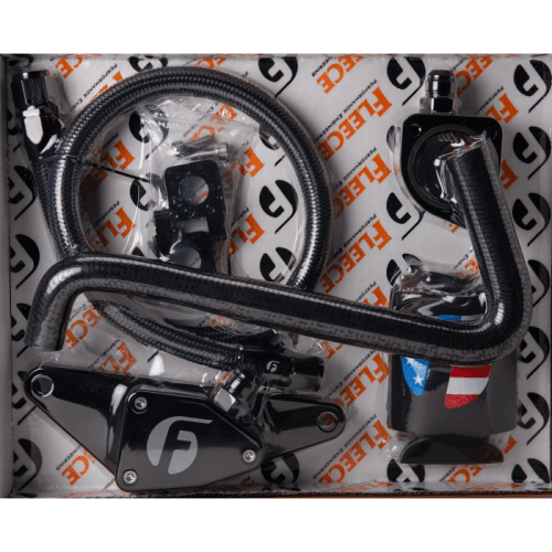 •Complete kit comes with braided hose and AN O-ring fittings to ensure a leak-free installation. Kits for MY 2003+ include billet hose brackets.